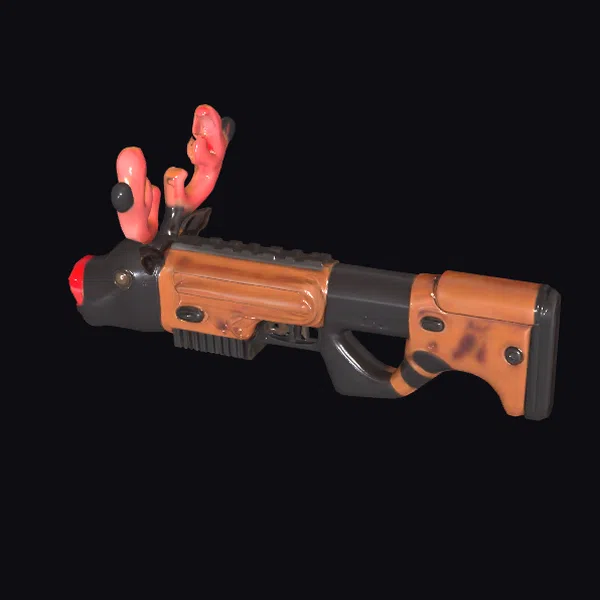 Gazing at the Reindeer Laser Blaster, its stylized form instantly captures attention with a blend of holiday cheer and sci-fi flair. The blaster’s body is primarily black, complemented by orange accents that give it a distinctive look. Two playful reindeer antlers protrude from the top, adding a whimsical touch, while the bright red nose at the front of the blaster adds a pop of color. The model is detailed with textures that mimic a toy’s finish, complete with small bolts and a grip that invites handling. Perfect for use in games, 3D printing projects, VR/AR experiences, animations, or as a unique design element, this model brings a festive and imaginative vibe to any project.