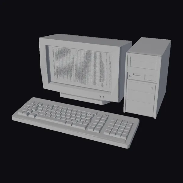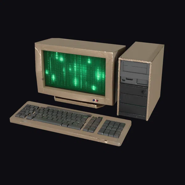 Gaze upon this nostalgic computer setup, comprising a boxy monitor, keyboard, and tower, all clad in a warm beige hue. The monitor’s screen pulses with a vibrant green code, reminiscent of iconic cyberpunk imagery. The keyboard, with its classic layout, and the tower, with its visible slots and buttons, add to the setup’s retro charm. This 3D model is perfect for projects requiring a dash of nostalgia or a futuristic-retro aesthetic, such as animations, games, or architectural visualizations. Its detailed textures and proportions ensure a realistic appearance, making it an excellent choice for designers and creators seeking to evoke a bygone era.