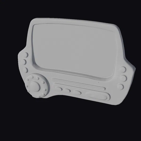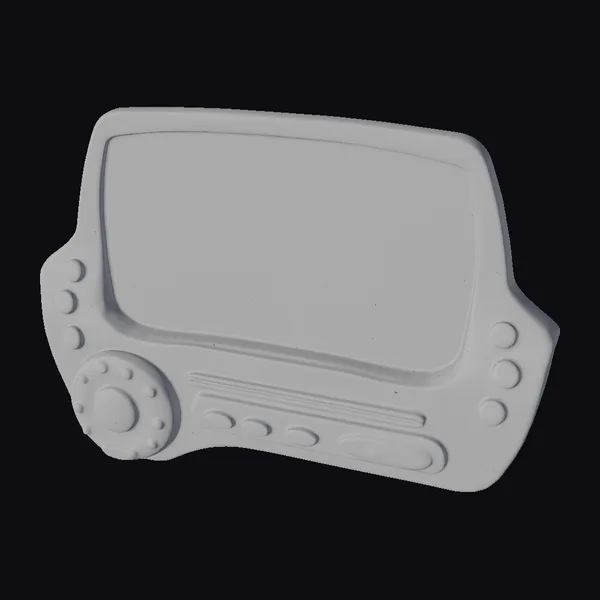 Detailed with precision, this retro media player interface showcases a large green screen at its center, surrounded by an array of buttons and controls that evoke a sense of nostalgia mixed with futuristic flair. The device’s body is adorned with short spikes, adding to its edgy, retro-futuristic aesthetic. The silver finish gives it a sleek, high-tech appearance. This model is perfect for designers and creators looking to add a touch of retro-futurism to their projects, whether it’s for game development, animation, or virtual reality experiences.