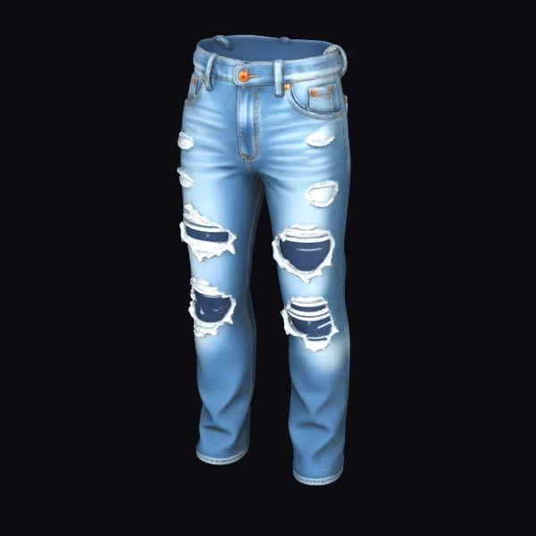 Rendered in exquisite detail, these ripped denim jeans showcase a light blue gradient wash with meticulously crafted tears and frayed edges, giving off a vibe of effortless cool. The model features a classic five-pocket design with copper-toned buttons and rivets, adding a touch of authenticity to its distressed look. Ideal for designers and creators looking to infuse their projects with a dose of realism and streetwear style, these jeans can be used in various applications, from game development and animation to virtual reality experiences and fashion design.