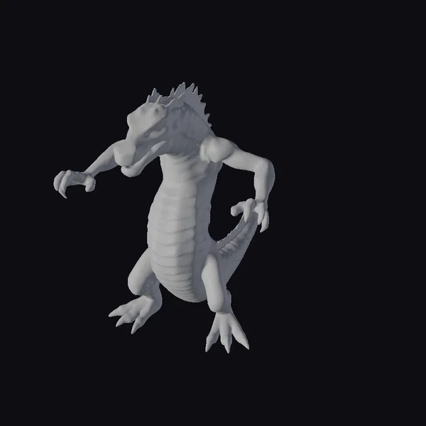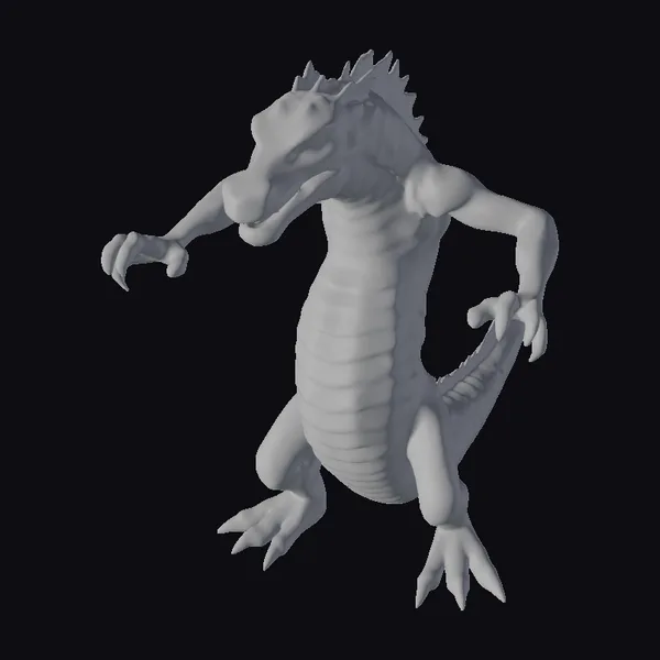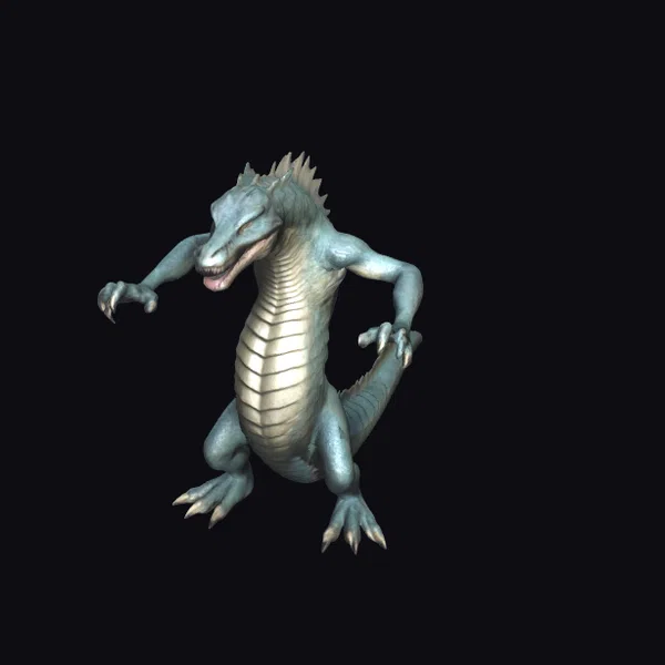 In a dynamic pose that exudes raw power, this river monster stands with its body angled forward, showcasing its impressive physique. The sculpted art style brings to life a creature with a long, scaly body, highlighted by a lighter underbelly and darker exterior scales. Its head, resembling that of a crocodile, is accentuated with a spiky crest running down its back, adding to its fearsome appearance. The creature’s arms are outstretched, with sharp claws extended, as if in the midst of an attack. The highly detailed texture and bold sculpted and embossed details make this model a standout. Ideal for use in games, 3D printing, VR/AR experiences, animation, and design projects where a mythical water creature is needed.