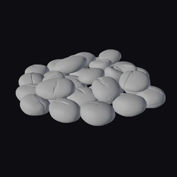 Rendered in exquisite detail, these coffee beans are piled high, showcasing their rich, dark brown hues and natural crevices. The subtle sheen on their surface catches the light, inviting you to almost smell the freshly roasted aroma. Each bean, uniquely shaped and textured, offers a realistic representation perfect for culinary projects, kitchen decor, or coffee-themed designs. Whether for animation, 3D printing, or virtual reality experiences, these coffee beans bring a touch of authenticity and warmth to any scene.