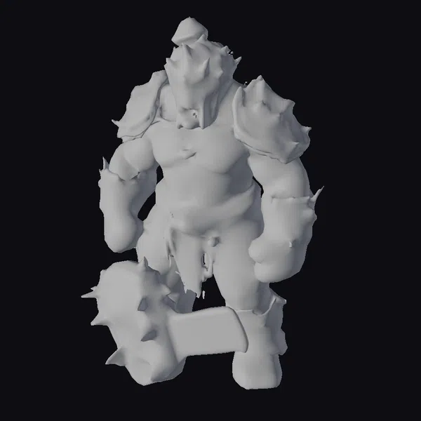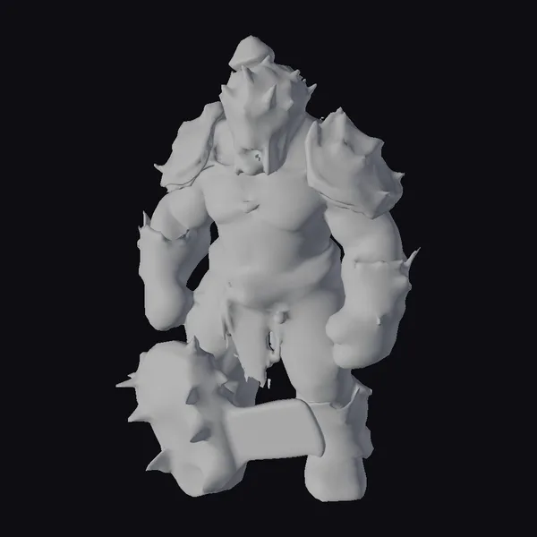 Standing tall with a muscular build, this fantasy creature exudes an aura of raw strength. His green skin is intricately detailed with cracked granite-gray texture and glowing emerald veins, suggesting a magical or supernatural origin. The character’s facial features are accentuated by spiky, rocky armor that covers his head, shoulders, and arms, adding to his intimidating presence. A tattered orange loincloth and a belt with a glowing green buckle add a touch of earthy contrast to his stone-like appearance. The massive spiked club he holds is a testament to his formidable power. This model is perfect for games, animation, or VR/AR experiences where a strong, mythical character is needed.