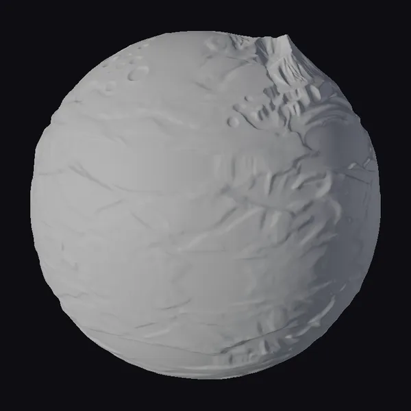 Detailed with precision, the surface of this planet model presents a complex, cratered terrain. The orange and brown hues blend in a marbled pattern, suggesting a geologically active history. The texture is rough and rocky, with craters of varying sizes scattered across the surface. When viewed up close, the intricate details invite the imagination to explore the mysteries of this alien world. Ideal for use in space-themed projects, such as animations, games, or scientific visualizations, this model provides a realistic foundation for creating immersive experiences.