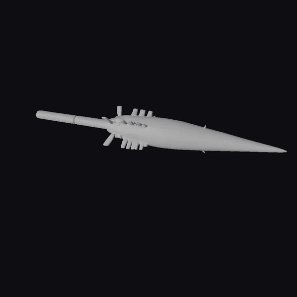 Detailed with precision, the RPG-7 projectile showcases its distinctive design with a blue-tipped cylindrical body, followed by a series of stabilizing fins and a pointed nose cone. The tan and metallic color scheme gives it a realistic and menacing appearance. Ideal for use in military simulations, game development, or architectural visualizations, this model brings a sense of authenticity to any project. The level of detail, from the fins to the tip, ensures a high-quality representation of this military hardware.