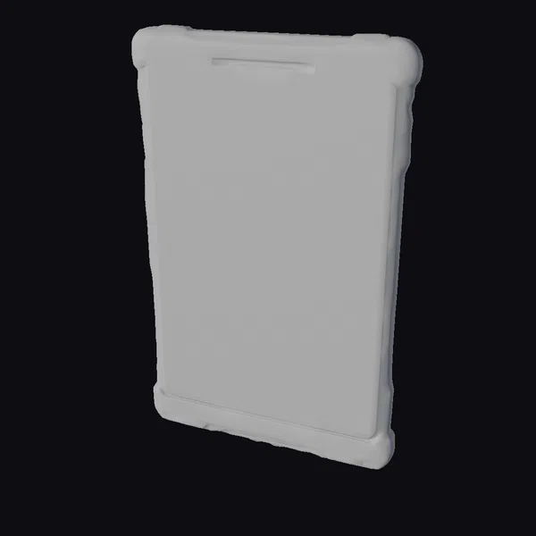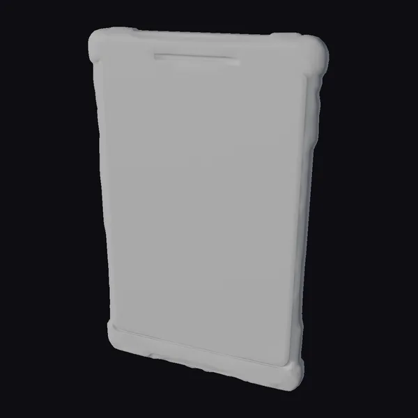 Positioned at a slight angle, the rugged tablet device showcases its robust design, with a black screen dominating its face. The casing is thick and industrial, featuring various ports and a blue light accent on the top left corner, suggesting advanced functionality. The device’s edges are reinforced, indicating its ability to withstand harsh environments. Its futuristic yet practical design makes it suitable for use in various fields such as field operations, industrial settings, or even sci-fi themed projects. The model’s details, from the subtle curvature of its edges to the reflective surface of its screen, are meticulously rendered, making it a versatile asset for games, print materials, VR/AR experiences, animations, or design visualizations.
