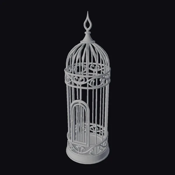 The rusted vintage birdcage boasts an impressive, curved silhouette, complete with a delicate finial at its apex. The intricately designed metal bars feature ornate scrollwork, adding a touch of elegance to the overall piece. A small, arched door provides access to the cage’s interior, while the circular base provides stability. The weathered, copper-toned finish imbues the cage with a sense of history, as if it’s been plucked straight from a bygone era. This 3D model would be perfect for use in games, 3D printing, VR/AR experiences, animation, or design projects, where a touch of vintage flair is desired.