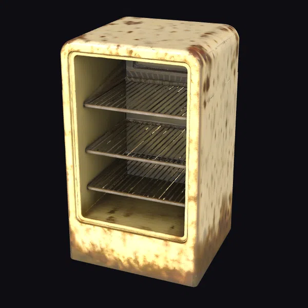 Crafted with meticulous attention to detail, this rustic metal cooler exudes a nostalgic charm. Its exterior boasts a weathered, rusty finish, complete with visible signs of aging and wear. The open door invites you to peek inside, where you’ll find multiple metal shelves, perfect for storing your favorite beverages or snacks. The cooler’s rugged texture and vintage aesthetic make it an excellent addition to any 3D scene, from rustic kitchens to outdoor settings. Its durable construction and realistic details ensure a seamless integration into your projects, whether for games, animation, or architectural visualizations.
