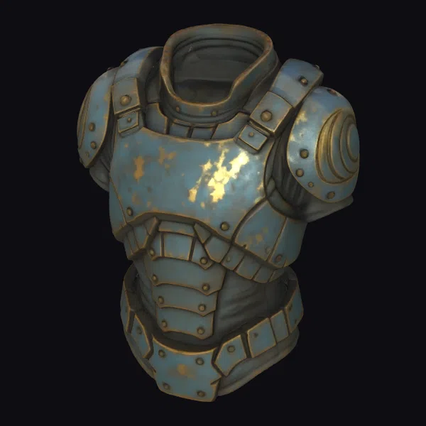 Perched atop a non-existent torso, the Rustic Metal Torso Armor presents a stalwart defense, its plates meticulously crafted to provide maximum protection. The upper chest plate, adorned with a central gold-marked section, appears to have been polished to a faint sheen, contrasting with the rougher texture of the lower sections. Shoulder guards curve around the absent arms, while a high collar protects the neck. Bolstered by rivets and bolts, this armor exudes a sense of rugged resilience. Ideal for use in games, 3D printing, VR/AR experiences, animation projects, or design visualizations, this model brings a touch of medieval flair to any creative endeavor.
