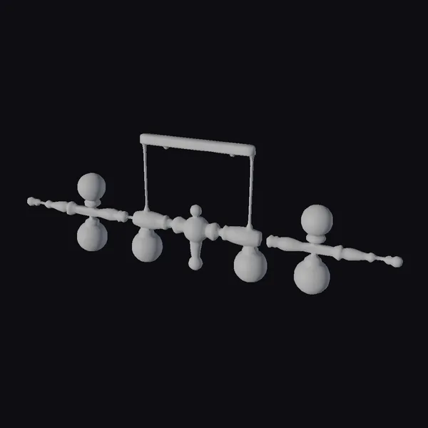 Crafted from natural wood, the frame of this chandelier features a series of interconnected segments, each adorned with a spherical glass orb. The wood’s texture, with its visible grain and rustic finish, adds a sense of organic warmth to the piece. The glass orbs, clear and unadorned, provide a sleek contrast to the earthy tones of the wood. When illuminated, the chandelier casts a warm, inviting glow, making it a perfect addition to spaces that value a cozy, rustic ambiance. Its detailed design and high-quality materials make it suitable for various applications, including 3D rendering projects, architectural visualizations, and game environments.