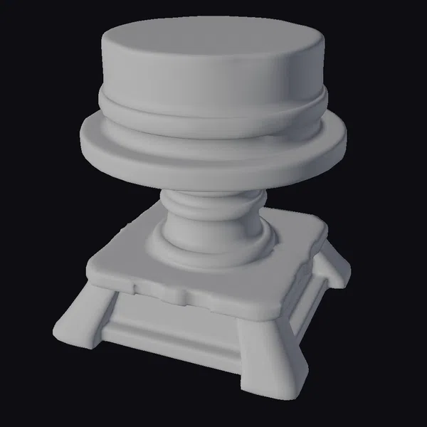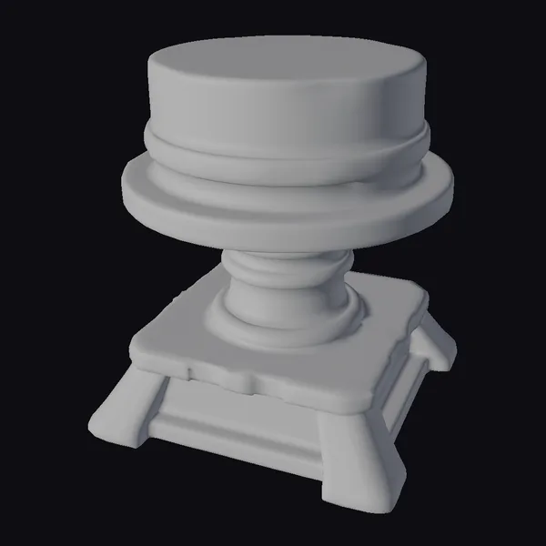 Crafted with meticulous attention to detail, this rustic wooden pedestal features a base and top section made from planks of wood, held together with metal bands that add both functionality and aesthetic appeal. The pedestal’s body consists of a series of connected wooden sections, each meticulously textured to mimic the natural look of aged wood. The metal bands encircling the pedestal not only serve as decorative elements but also provide structural support. The entire piece exudes a sense of rustic elegance, making it an ideal prop for games, animations, or architectural visualizations where a touch of rustic charm is desired. Its detailed design and sturdy construction make it versatile for use in various creative projects.