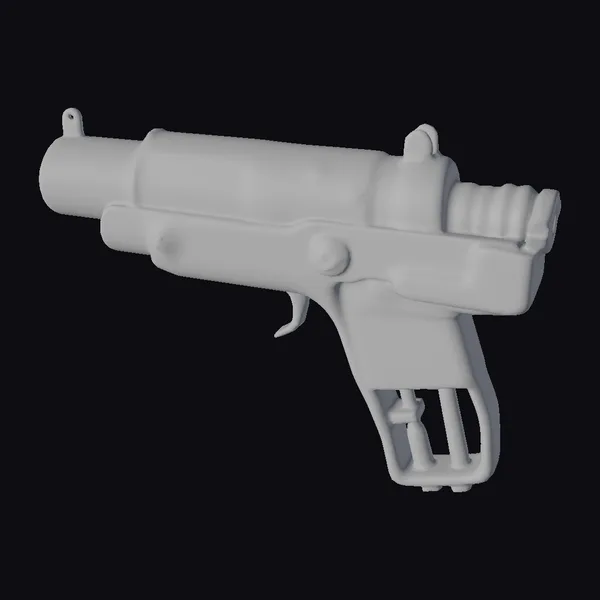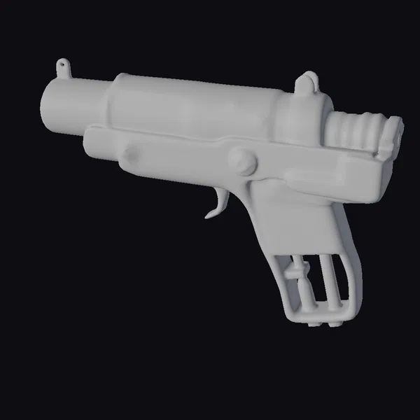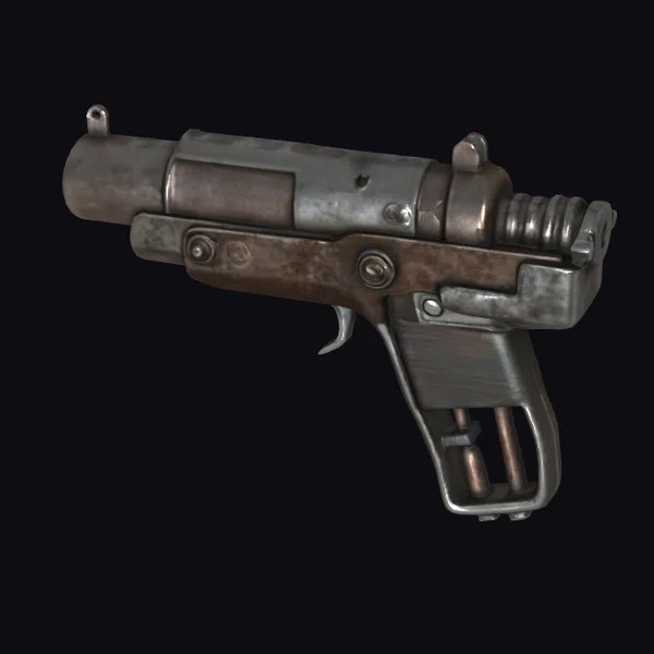 Detailed with precision, this rusty blaster sidearm boasts a worn, metallic finish that hints at its storied past. The cylindrical barrel and grip are adorned with bolts, screws, and a hammer, showcasing a blend of industrial and sci-fi aesthetics. The dark, muted color palette, complete with shades of gray and brown, adds to the weapon’s rugged appeal. Whether you’re crafting a dystopian landscape, a space battle scene, or a character’s arsenal, this blaster model is poised to bring authenticity and intrigue. Its level of detail, from the trigger mechanism to the barrel’s ridges, makes it suitable for close-up shots in animations, games, or VR experiences.