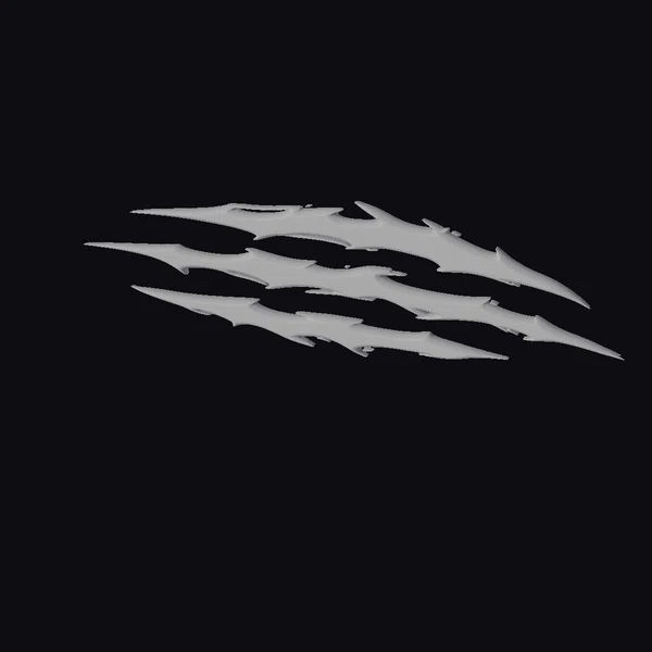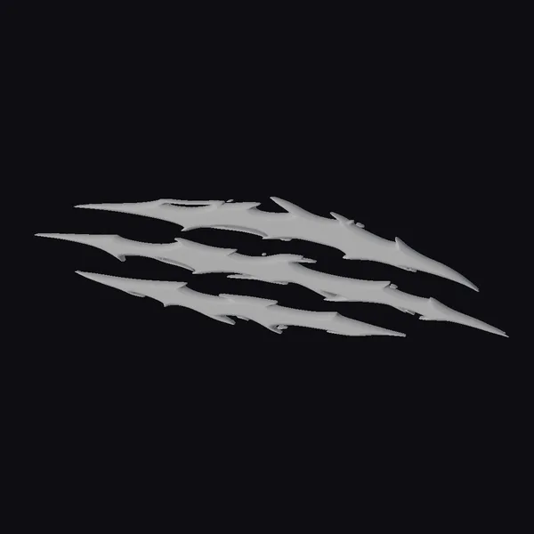 These stylized claw marks are presented in a dynamic, slashing formation, as if they have torn through the air with force. The metallic texture is richly detailed, with a rusty patina that suggests age and wear. The edges are sharply defined, with a sense of raised relief that gives the marks a three-dimensional appearance. The weathering effect adds depth, with subtle gradations of color that evoke a sense of oxidation and decay. These marks could be used in a variety of contexts, from game design and animation to architectural visualization and industrial design. They would be perfect for adding a touch of industrial chic or post-apocalyptic grit to any project.
