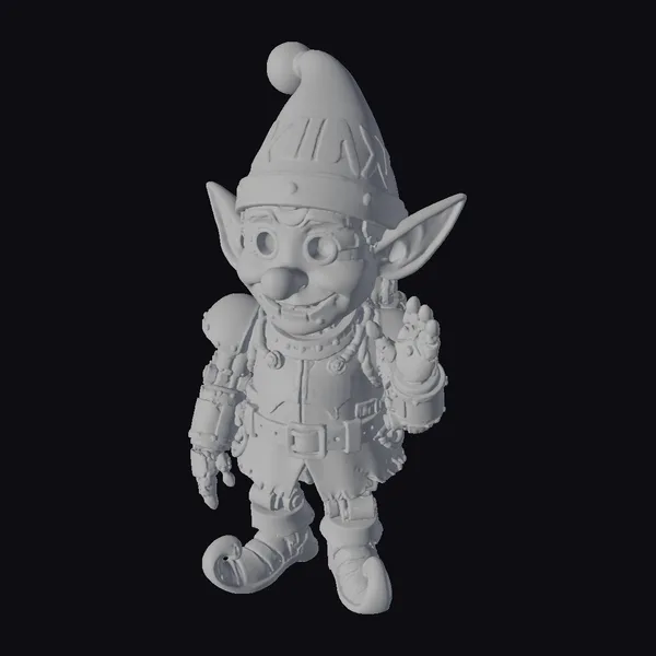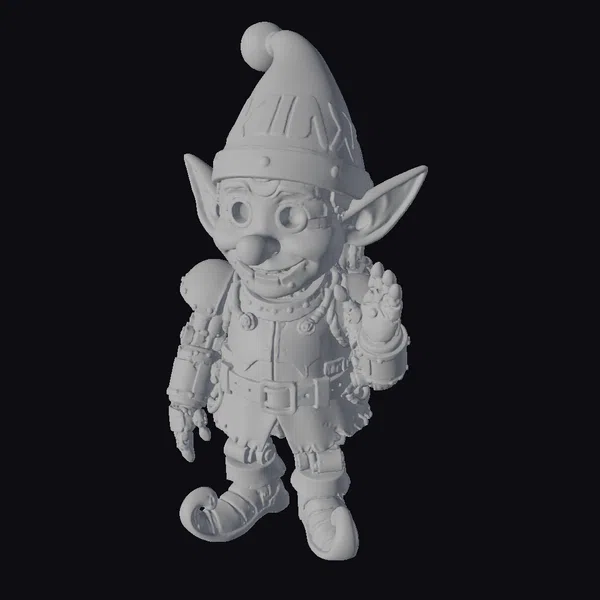 Detailed with precision, this stylized elf figurine boasts a robust build with exaggerated features such as oversized ears and a cheerful face. The elf’s attire includes a uniquely designed santa hat with ‘NOEL’ spray-painted on it, suggesting a rebellious streak even in the holiday season. The armor, a mix of leather and metal, adds a touch of fantasy and protection, suitable for a creature that might be found in a winter wonderland or a festive workshop. The rusty and metallic textures give the model a weathered, as if battle-hardened, appearance that contrasts delightfully with the whimsy of its role. Ideal for use in games, 3D printing, VR/AR experiences, animations, or as a decorative piece, this model brings a dash of humor and holiday spirit to any project.