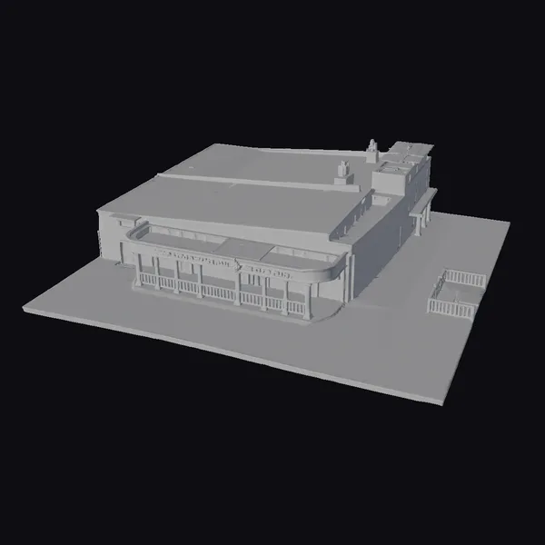 Crafted with precision, the Santa Barbara Municipal Building model showcases a harmonious blend of red and yellow hues, complemented by a flat, tan roof and a metal awning that shelters the entrance. The awning proudly displays the building’s name, adding a touch of authenticity. Set on a spacious platform, the model includes a small fence and a detailed base that enhances its overall realism. The building’s design and colors evoke a sense of warmth and approachability, making it an excellent choice for projects requiring a realistic architectural model. Ideal for use in games, 3D printing, VR/AR experiences, animation, and design projects, this model brings a touch of civic charm to any scene.
