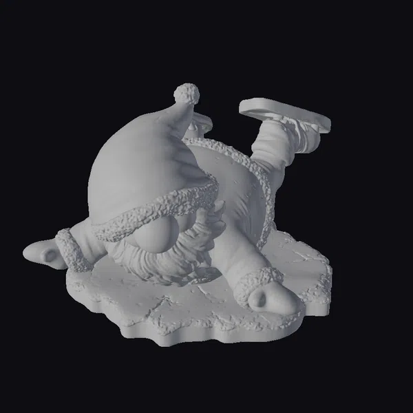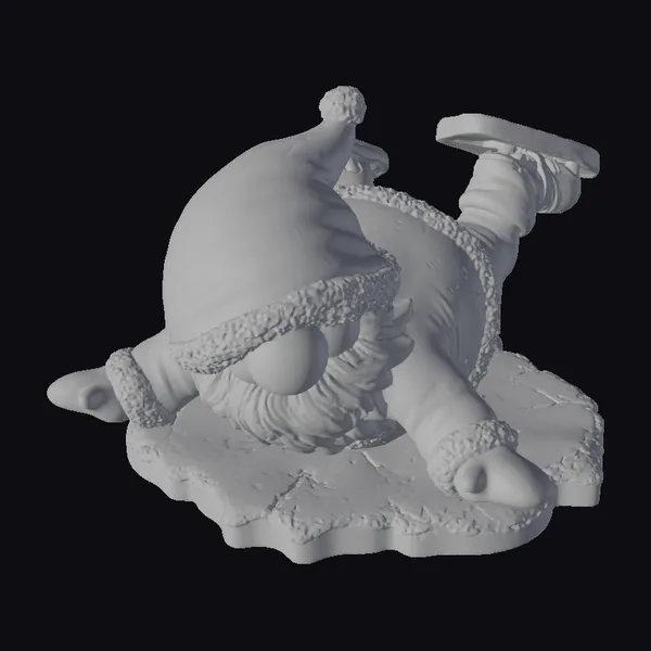Get into the holiday groove with this delightful 3D model of Santa Claus experiencing an ice-skating fail. The jolly old elf is captured mid-tumble, his red coat with white fur trim and matching hat a stark contrast to the icy blue and white ground he lies on. His black gloves and shoes add a touch of realism to the otherwise cartoonish scene. The model boasts intricate details such as the texture of Santa’s beard and the rough edges of the ice. Perfect for adding a dash of humor to your 3D projects, be it for animation, games, or festive designs.