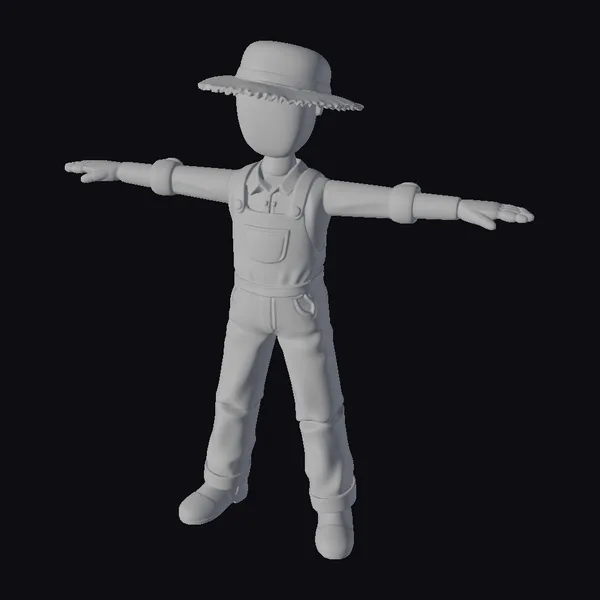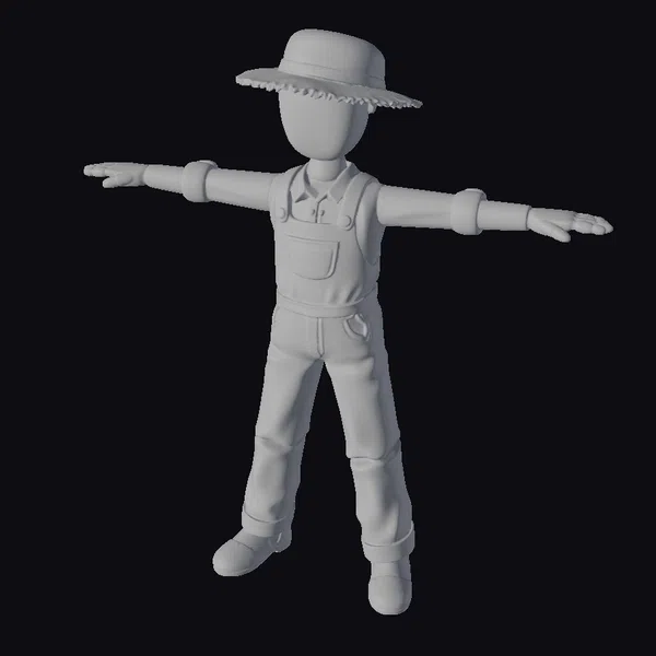The Model “Scarecrow Farm Worker” is also available upon request in many other 3D formats, such as 3MF, BLEND, FBX, OBJ, USDZ and others, making it easy to integrate into your project.