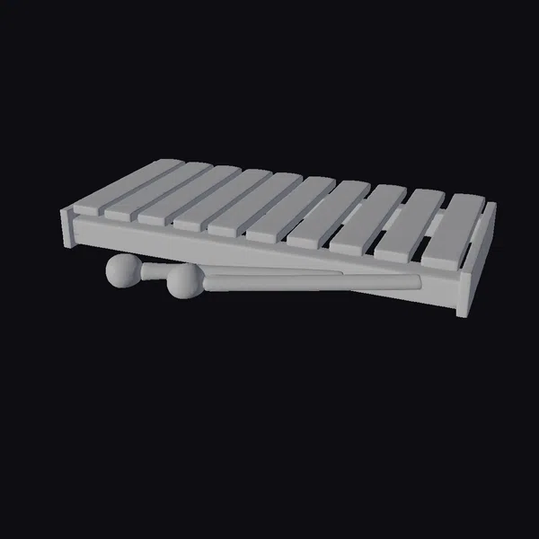 Crafted with meticulous attention to detail, the xylophone’s black base provides a sturdy foundation for its 12 golden-hued bars, each one meticulously positioned to produce a rich, resonant sound. Two matching mallets rest beneath, their dark balls and wooden handles a perfect complement to the instrument’s elegant design. Whether in a classroom or on a professional stage, this xylophone is sure to inspire musical creativity. Its realistic appearance and precise proportions make it an ideal choice for 3D modeling projects, animations, or educational materials.