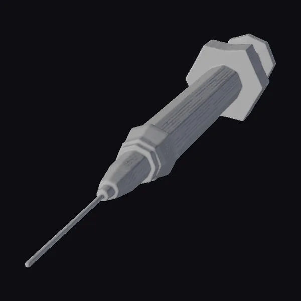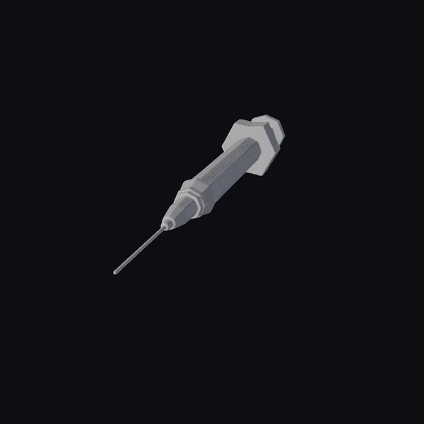 Positioned at an angle, the syringe’s body displays a mix of smooth and faceted surfaces, characteristic of low-poly modeling. The transparent barrel allows the red measurement lines to stand out against the slightly cloudy plastic. A subtle sheen on the surface hints at a careful balance between realism and stylization. The model’s worn appearance makes it suitable for scenarios requiring a sense of realism and age, such as in medical simulations, 3D animations, or even as a prop in a virtual environment. Its low-poly nature ensures ease of use in various applications, from video games to architectural visualizations.