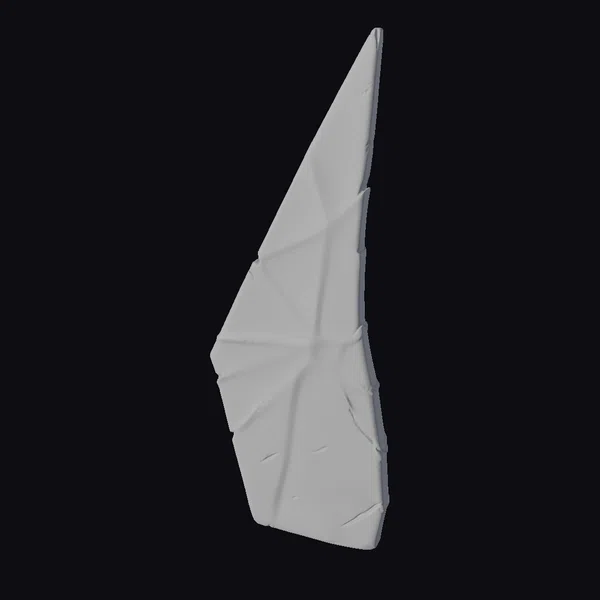 Positioned at a dynamic angle, the shattered glass fragment showcases its intricate details, from the smooth, curved surface of the glass to the razor-sharp edges that glint in the light. The transparent material allows for a glimpse into the depths of the shard, adding an air of realism to any 3D environment. This model excels in applications where a touch of realism is needed, such as in games, 3D printing, VR/AR experiences, animation, and design projects. The level of detail and accuracy in the model ensures a seamless integration into various scenes.