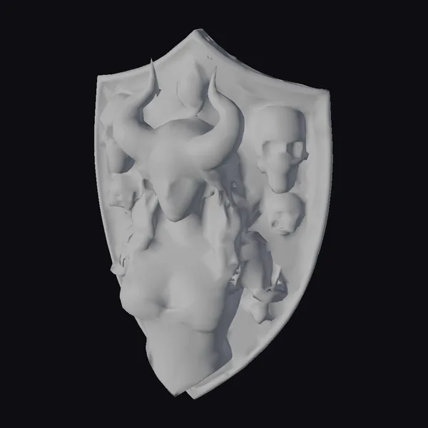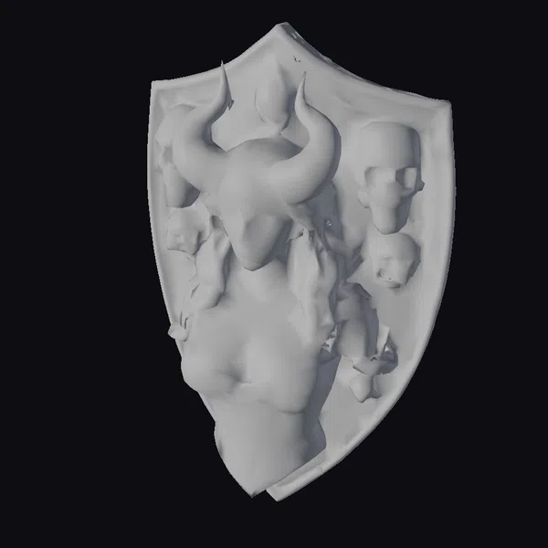 This captivating shield maiden is meticulously rendered with a blend of fantasy and gothic elements. Her long, flowing hair cascades down her chest, contrasting with the metallic sheen of her armor and the shield that frames her. The shield itself is a masterpiece of design, featuring a central gemstone and surrounded by human skulls, adding a layer of mystique and danger to her appearance. The horns protruding from her forehead signify her otherworldly or demonic connection. The model showcases intricate textures, from the polished surface of the shield to the detailed craftsmanship of her armor. Ideal for use in games, animations, or virtual reality projects, this model brings a touch of dark fantasy to any scene.
