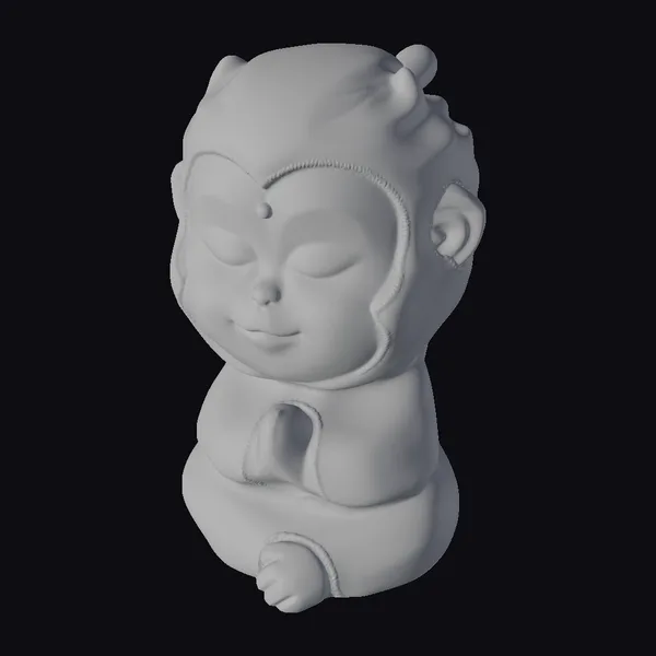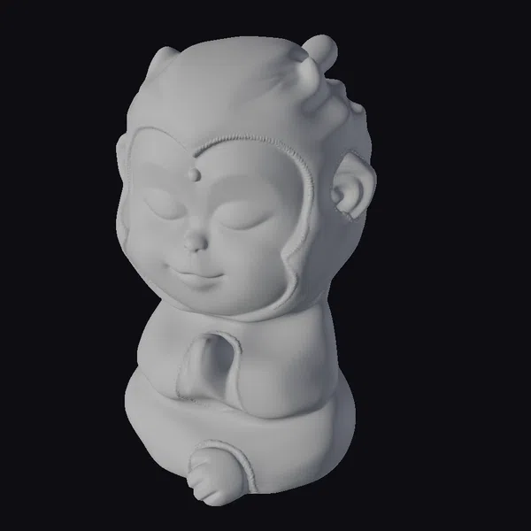 Perched in a serene pose, this shiny monkey figurine commands attention with its closed eyes and gentle smile. The stylized design amplifies its charm, with a metallic sheen that shimmers in the light. Crafted with meticulous detail, the figurine boasts a range of colors, from soft pastels to rich metallic tones. Its meditative stance invites contemplation, making it a perfect addition to any fantasy or art collection. Ideal for 3D printing, animation, or virtual reality projects, this model brings a touch of whimsy and wonder to any creative endeavor.
