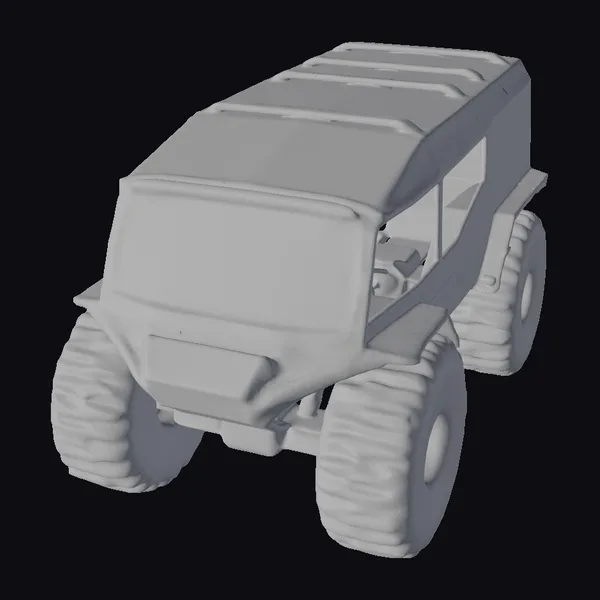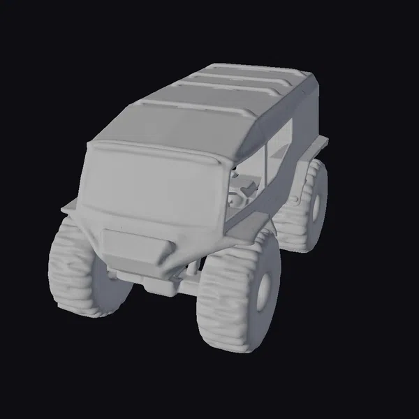 Detailed with precision, this silver all-terrain vehicle boasts a robust design, complete with large, black tires and a spacious interior. The vehicle’s metallic finish reflects light, accentuating its sharp edges and rugged features. Its off-road capabilities make it an ideal choice for navigating challenging landscapes. Suitable for use in games, animations, and architectural visualizations, this model is perfect for designers and developers seeking a realistic, high-quality vehicle. The vehicle’s proportions and textures are meticulously crafted, ensuring a lifelike appearance.