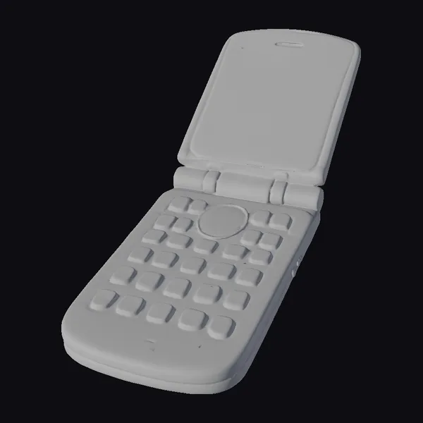 Rendered in exquisite detail, this silver flip phone features a smoothly curved body that opens to reveal a larger internal screen, accompanied by a smaller external display on the flip side. The keyboard is meticulously designed with black buttons, each adorned with clear, readable text. The phone’s flip mechanism is subtly captured, showcasing the hinges that connect the two parts. Ideal for projects requiring a touch of nostalgia or a sleek, retro-futuristic aesthetic, this model can be used in various applications, including game development, 3D printing, virtual reality experiences, animations, and design visualizations.