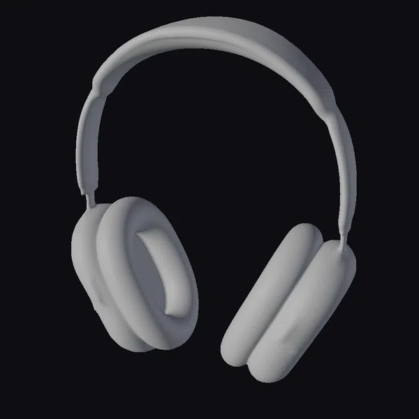 Positioned dynamically, these headphones showcase their impressive design. The metallic silver finish is meticulously detailed, with subtle reflections that highlight the material’s quality. The ear cups are large and rounded, providing a sense of comfort and functionality. The headband, also metallic, arches elegantly, suggesting flexibility and durability. These headphones are ideal for 3D modeling projects, animation, or virtual reality applications where attention to detail is crucial. Designers and artists can integrate this model into their work to add a touch of modernity and sophistication.