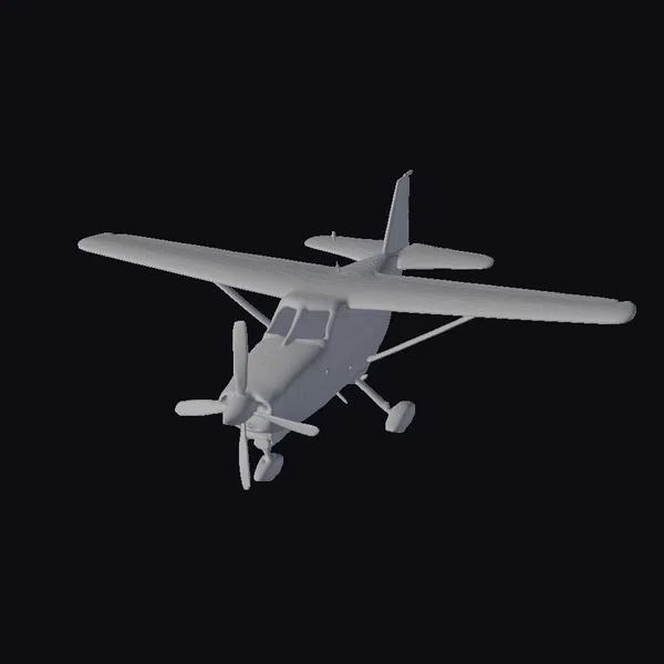 Detailed from every angle, the Cessna 172 airplane model boasts a robust silver body complemented by a vibrant red and blue propeller, adding a pop of color to its overall sleek design. Its wings, positioned for flight, showcase a subtle curvature, while the landing gear, complete with wheels, adds to the model’s realism. The metallic finish shines under light, suggesting a readiness for takeoff. Ideal for projects requiring a realistic aircraft model, this 3D representation can elevate scenes in games, animations, or architectural visualizations with its authentic look.
