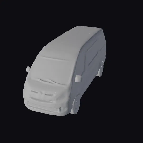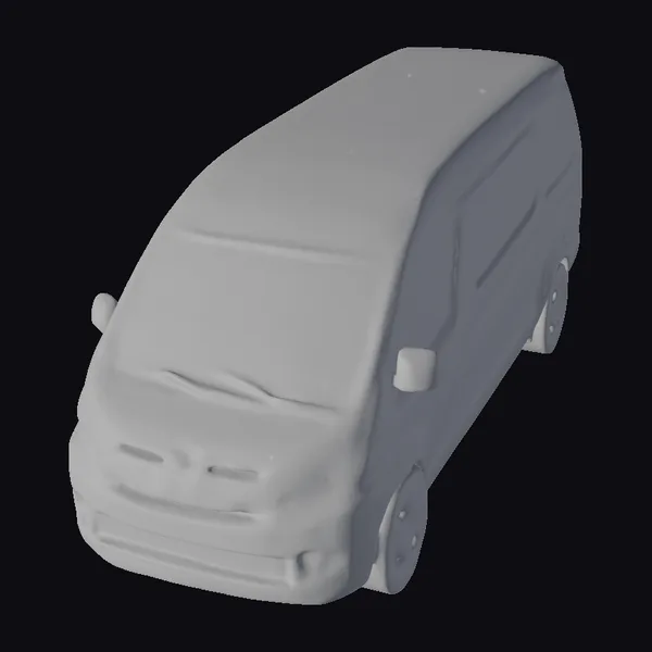 Positioned at an angle, the Toyota van’s front and side profiles are on full display, highlighting its robust build and smooth curves. The silver body gleams with a subtle sheen, while the black roof and tinted windows add a touch of sophistication. The van’s wheels and side mirrors are meticulously detailed, giving it a lifelike appearance. Ideal for use in games, architectural visualizations, or film projects, this model brings a sense of realism and authenticity to any scene.