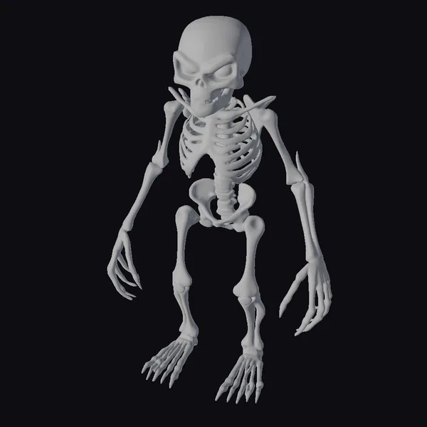 Standing tall with a menacing T-pose, this skeletal demon creature is a masterpiece of horror art. Its skeletal structure is meticulously detailed, with a prominent skull, ribcage, and limb bones. The creature’s pose showcases its sharp, bony fingers and toes, perfect for grasping and terrorizing. The red glow of its eyes adds an unsettling touch, making it a perfect fit for horror games, animations, or sci-fi projects. Its gray, bony texture and spiky protrusions evoke a sense of fear and unease. Use it to add a chilling element to your 3D scenes, animations, or games.