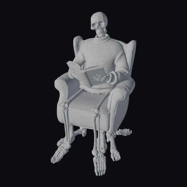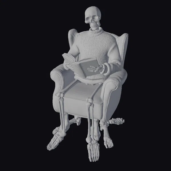 The Model “Skeleton Reading Book” is also available upon request in many other 3D formats, such as 3MF, BLEND, FBX, OBJ, USDZ and others, making it easy to integrate into your project.