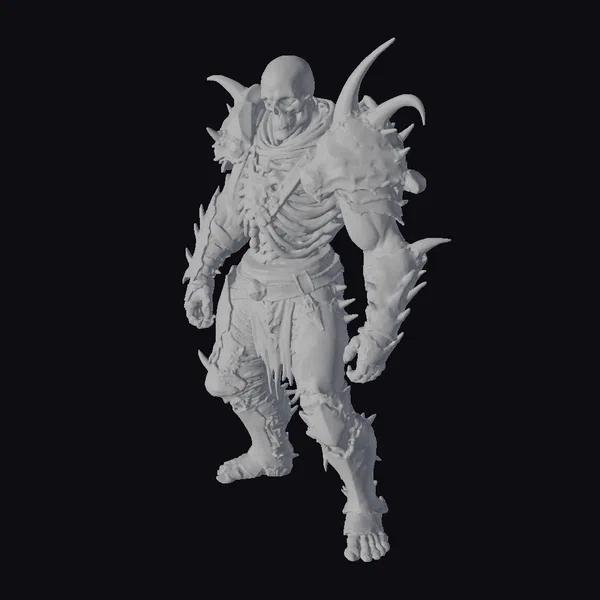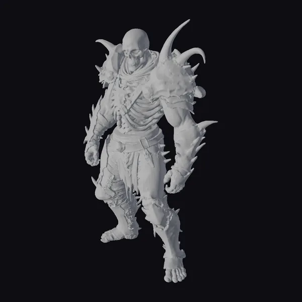This detailed 3D model of a skeleton warrior showcases intricate textures and a dynamic pose, highlighting the character’s muscular build beneath his skeletal frame. The bone armor, complete with spikes and a distinctive shoulder guard, covers parts of his body, while tattered fabric and a red scarf add a touch of realism. The model’s facial structure, devoid of skin, still manages to convey a sense of intensity. Ideal for use in games, 3D printing, VR/AR experiences, animation, and design projects, this model brings a touch of dark fantasy to any project. The skeletal character’s pose suggests movement, as if he’s about to charge into battle, making it perfect for scenes requiring dynamic action.