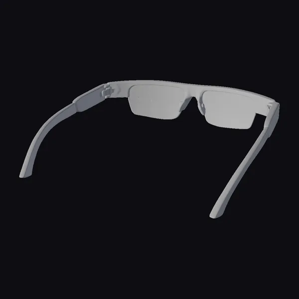 Positioned at a slight angle, the glasses showcase their ergonomic design, with temples that curve seamlessly around the ears. The clear lenses, devoid of any visible frames within, offer a sleek, unobstructed view. The black frame, crafted with precision, features subtle blue accents that add a touch of sophistication. These smart glasses are not just a fashion statement but a gateway to integrating technology into various projects, from game environments and animations to architectural visualizations and product designs. Their detailed texture and realistic appearance make them an invaluable asset for creators looking to infuse their work with a dose of modernity.