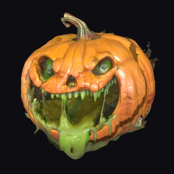 This meticulously crafted 3D model of a slime oozing pumpkin face captures the essence of Halloween with chilling precision. The pumpkin’s surface is intricately carved, forming a grotesque face with glowing green eyes that seem to pierce through darkness. The mouth, stretched wide in a scream or a snarl, reveals jagged teeth and flows with a gooey, green slime that trickles down, pooling at the bottom. The texture of the pumpkin’s skin, with its ridges and subtle imperfections, adds to the realism, while the slime’s viscous flow appears almost liquid. The model’s lighting accentuates the eerie atmosphere, making it perfect for projects requiring a Halloween-themed element. Whether for animation, game design, virtual reality, or simply as a decorative piece, this model is sure to instill a sense of spooky delight.