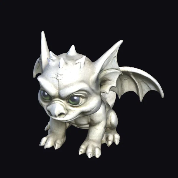 Crouching low to the ground, this small stone gargoyle exudes a sense of readiness, as if poised to spring into action at a moment’s notice. Its body is rendered in exquisite detail, with a textured, stone-like surface that appears worn and aged. The gargoyle’s wings, though small, are intricately designed with a delicate pattern of folds, suggesting a sense of vulnerability and charm. Its eyes gleam with a fierce inner light, casting a piercing gaze that seems to bore into the soul. This model is perfect for adding a touch of medieval mystique to games, animations, or architectural visualizations.