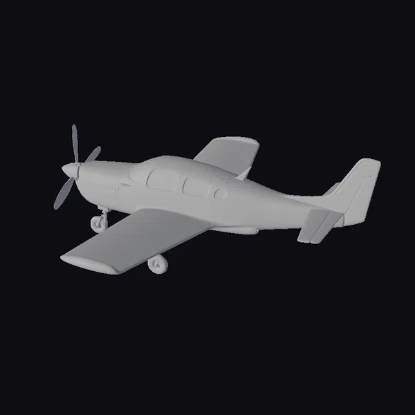 Positioned dynamically with a slight tilt, this small white propeller aircraft showcases its detailed features. The model boasts a smooth, white body with two blue stripes running along its side, complemented by a black propeller and matching black windows. The landing gear is neatly designed, adding to the overall sleek appearance. The aircraft’s proportions are accurate, with a well-defined wingspan and a stabilizer at the rear. This model is perfect for projects requiring a realistic and versatile aircraft, such as animations, games, or architectural visualizations. Its high level of detail makes it suitable for close-up shots or as a background element.