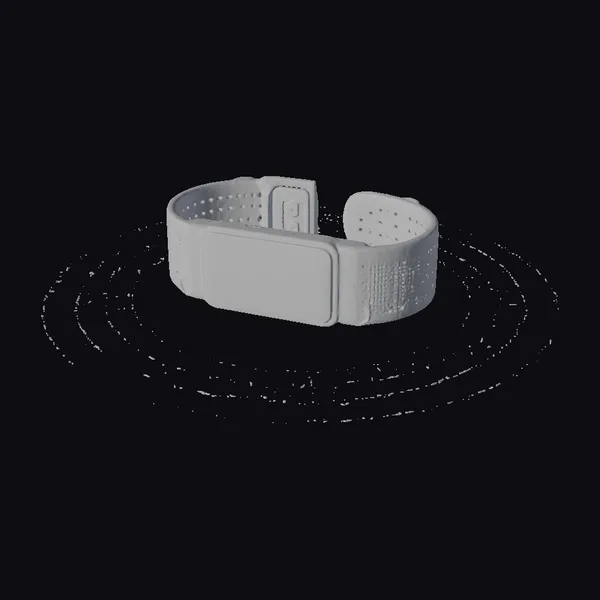 Positioned dynamically, the Lumos bike helmet light showcases its ergonomic design, complete with a textured black strap and a smooth, gray device housing. The bright yellow logo stands out against the dark background, surrounded by subtle motion lines that suggest movement and energy. High-quality textures and precise modeling bring this gadget to life, making it perfect for use in product showcases, animations, or virtual reality experiences. Whether for cycling enthusiasts or tech-savvy individuals, this model captures the essence of modern safety and style.