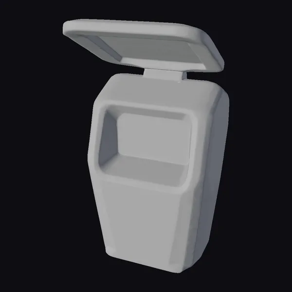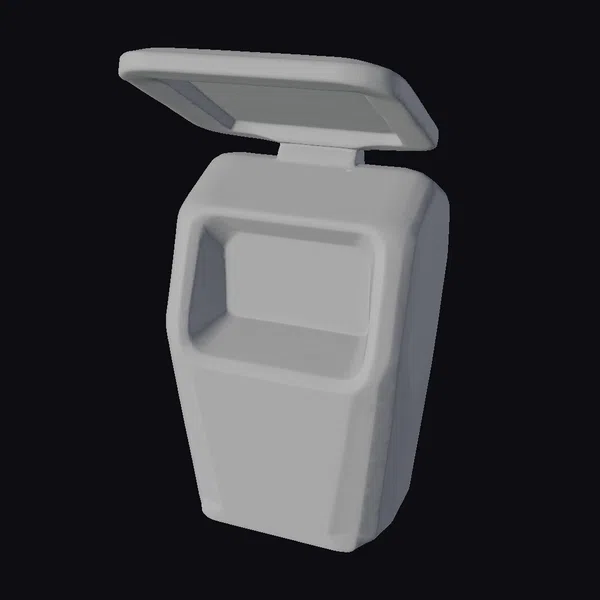 Positioned dynamically with its lid ajar, this smart waste collection bin showcases a robust, industrial aesthetic complemented by futuristic elements. The model features a predominantly gray body with metallic accents, a large opening for easy disposal, and a small screen that could display interactive information. Two bright green rectangles glow softly within, suggesting an interface for user interaction. The bin’s design emphasizes functionality and eco-friendliness, making it a focal point for smart city initiatives. Its detailed textures, from the smooth surfaces to the hint of complexity within the open lid, make it an excellent choice for projects focusing on urban planning, sustainable living, and technological advancement. Whether for architectural visualizations, urban planning projects, or as a prop in a futuristic game environment, this model brings a vision of the future to life.
