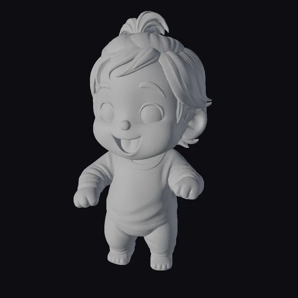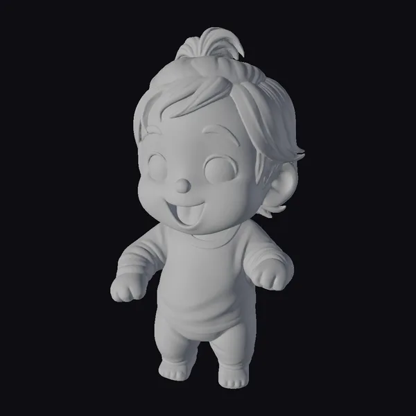 Gazing at this delightful cartoon baby, you’re immediately struck by the joyful expression on his face, accentuated by large, expressive eyes and a wide, cheerful grin. His brown hair is playfully tied up in a small top knot, framing his round, rosy face. The baby’s attire consists of a soft pink long-sleeve shirt and white pants, giving him a sweet, endearing appearance. Standing barefoot with arms slightly extended, as if ready to take his first steps or embrace you, this model exudes warmth and happiness. The detailed textures and vibrant colors bring this character to life, making him perfect for projects requiring a lovable, animated child figure. Whether for animation, game development, or virtual reality experiences, this model is sure to add a touch of charm and innocence.