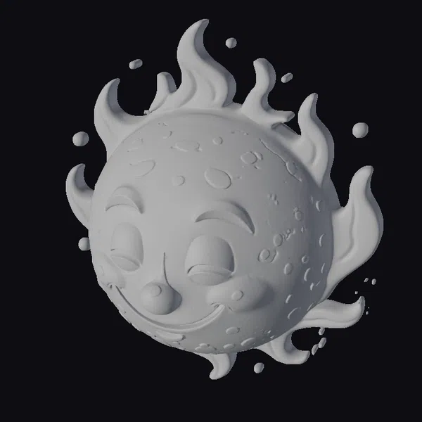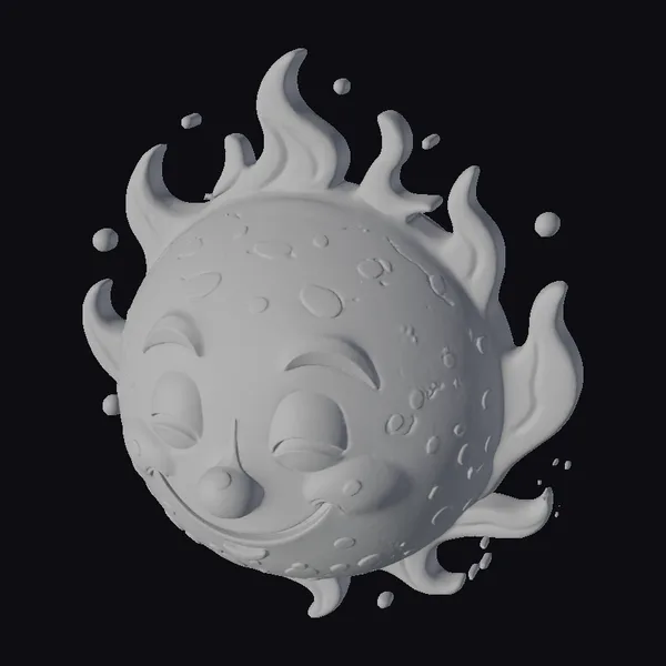 Gazing at this delightful, smiling giant blue star, you’ll notice its cheerful face with a closed-eye smile, adding a whimsical touch to any scene. The model’s surface is adorned with darker blue spots, giving it a textured, celestial appearance. The star’s bright blue color is beautifully contrasted with the softer, turquoise flames that dance around it, creating a sense of movement. These flames are intricately detailed, with a glowing effect that adds depth to the overall design. This model is ideal for use in animations, games, or any project requiring a friendly, otherworldly element. Its cartoonish style ensures it can be used in a variety of contexts, from educational materials to entertainment projects.