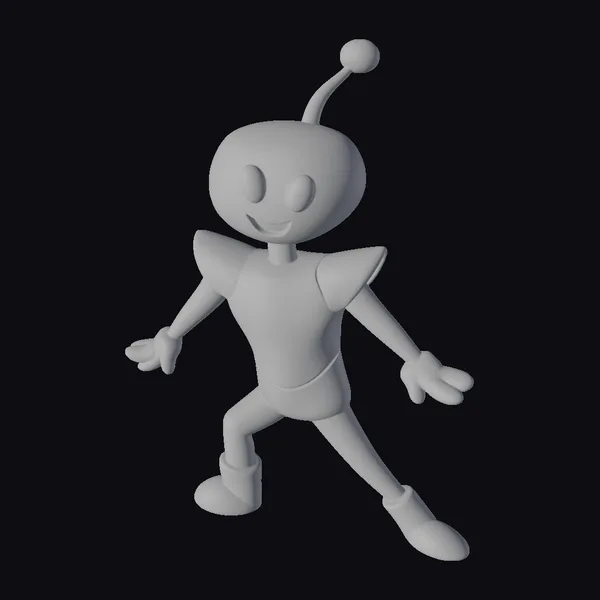 Detailed with precision, this charming robot figure stands out with its bright yellow and orange color scheme. The model’s head is adorned with a distinctive antennae-like protrusion, adding to its quirky charm. Its arms and legs are positioned in a lively, dynamic stance, suggesting movement and energy. The large, round eyes and wide smile contribute to its friendly and approachable demeanor. Crafted with a glossy finish, the model appears as if freshly molded from plastic. Ideal for use in animations, games, virtual reality experiences, or as a decorative element in digital designs, this robot figure is sure to capture attention and evoke a sense of playfulness.