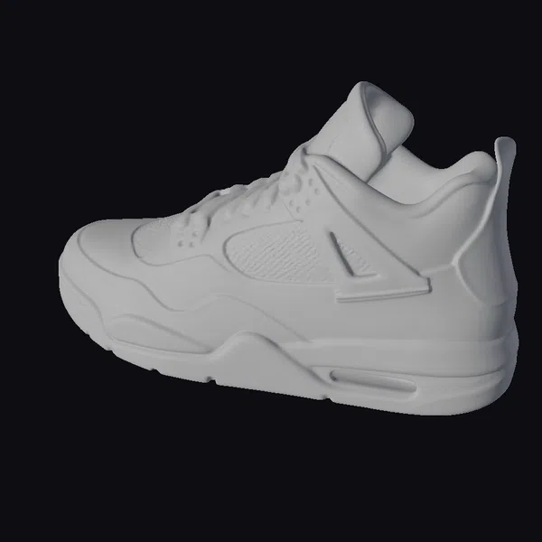 Positioned dynamically, this sneaker model showcases its intricate details, from the textured blue laces to the glossy blue accents on the sole and upper parts. The white base provides a clean canvas, while the blue elements add a pop of color, creating a visually appealing contrast. The mesh section on the side enhances the shoe’s sporty vibe, making it perfect for 3D rendering projects, animations, or even virtual reality experiences. Designers and artists can integrate this model into their work for a touch of realism and style, whether it’s for a game, a fashion presentation, or an architectural visualization.