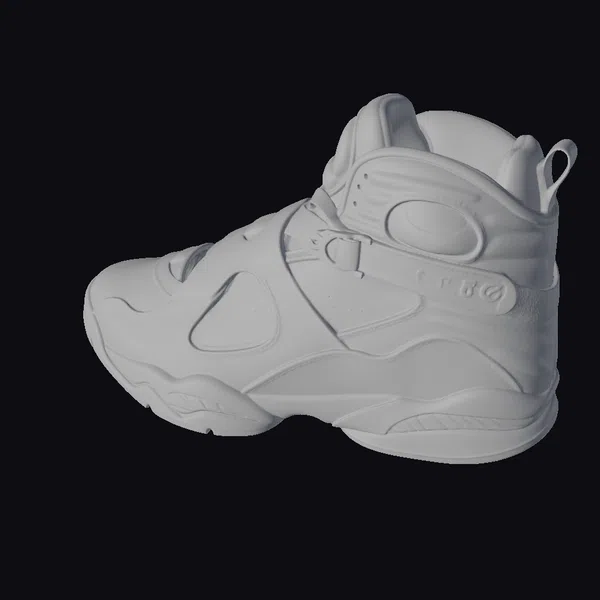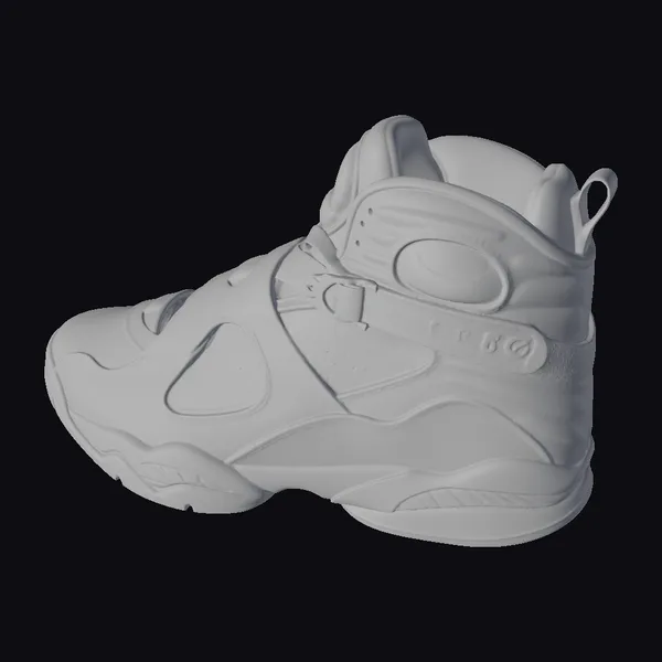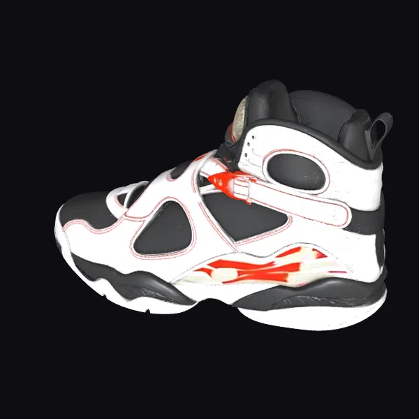 Detailed with precision, this stylized sneaker model boasts a predominantly white upper with black accents and vibrant red flame details that add a dynamic touch. The shoe’s design is characterized by its unique lacing system and chunky sole, making it a standout piece for any collection or project. Whether you’re working on a game, animation, or design project, this sneaker model is perfect for adding a pop of personality. Its stylized appearance blends realism with artistic flair, offering a versatile asset for various applications.