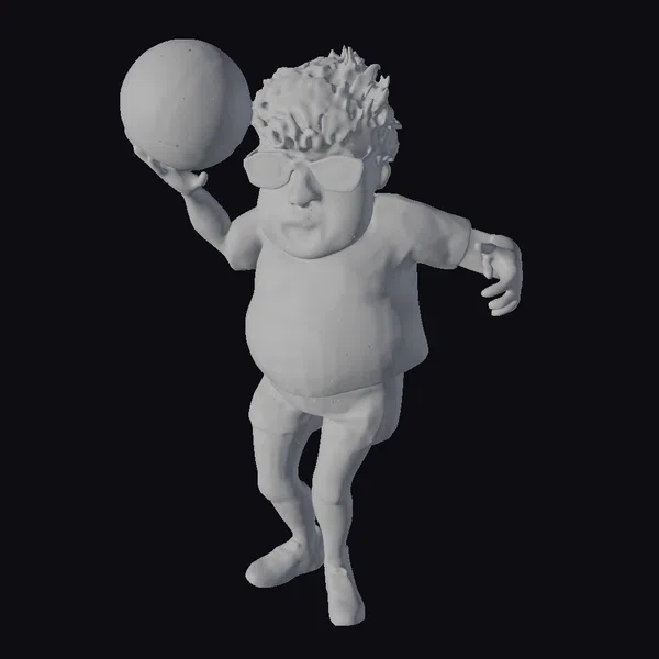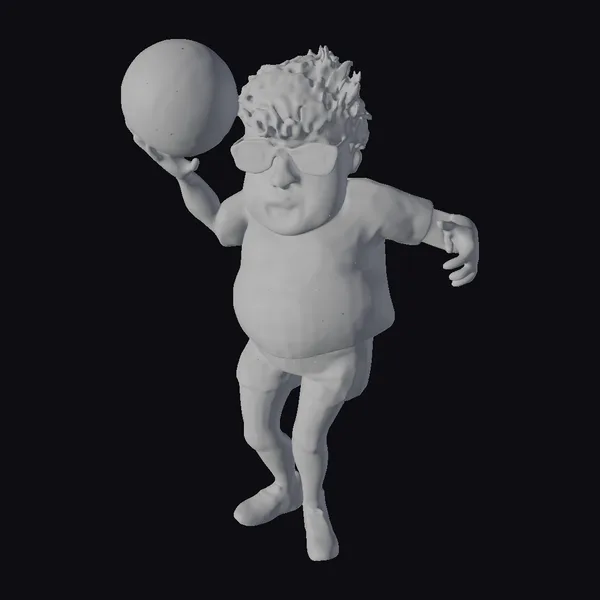 Get ready to add a dash of humor to your project with this delightful 3D model of a cartoon soccer player! The character boasts a rounded physique, short brown hair, and a pair of black-framed glasses perched on the end of his nose. His white and blue soccer uniform is complete with a crest on the chest, blue socks, and black cleats. The model’s pose captures the dynamic movement of a soccer player in mid-action, with the ball hovering above his outstretched hand. The level of detail is exceptional, with subtle textures and shading that bring the character to life. This model is perfect for use in games, animations, or 3D printing projects that require a lighthearted and comedic touch.