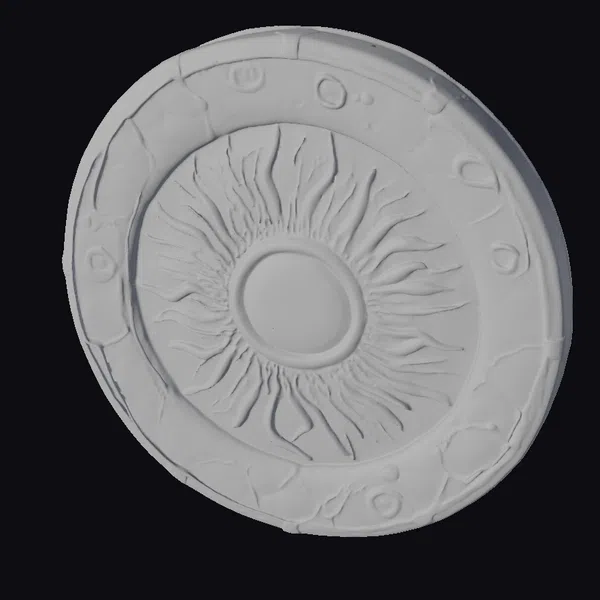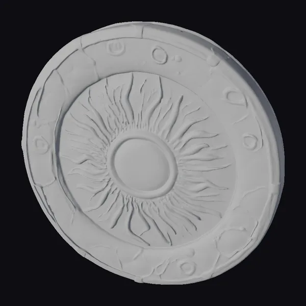 In a mesmerizing display of fantasy art, a serpent coils ouroboros-style around a glowing solar eclipse, its body adorned with shimmering celestial scales. The emblem’s dark background, cracked and weathered, provides a striking contrast to the radiant golden hues of the serpent and the solar eclipse. As the serpent’s body wraps around the central image, it appears to be absorbing and radiating energy. The emblem’s intricate details and textures make it a compelling addition to any fantasy or sci-fi project, suitable for use in games, animation, or 3D printing. Its unique blend of mythology and astronomy makes it a versatile asset for designers and artists seeking to add a touch of the extraordinary to their work.