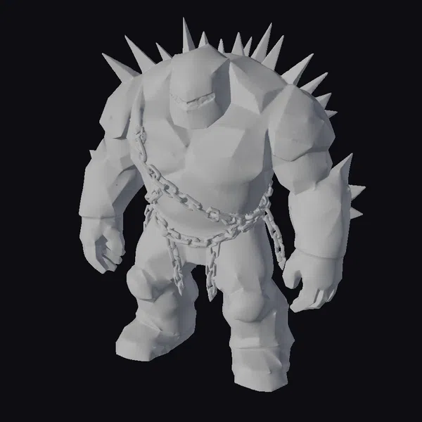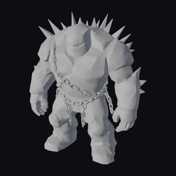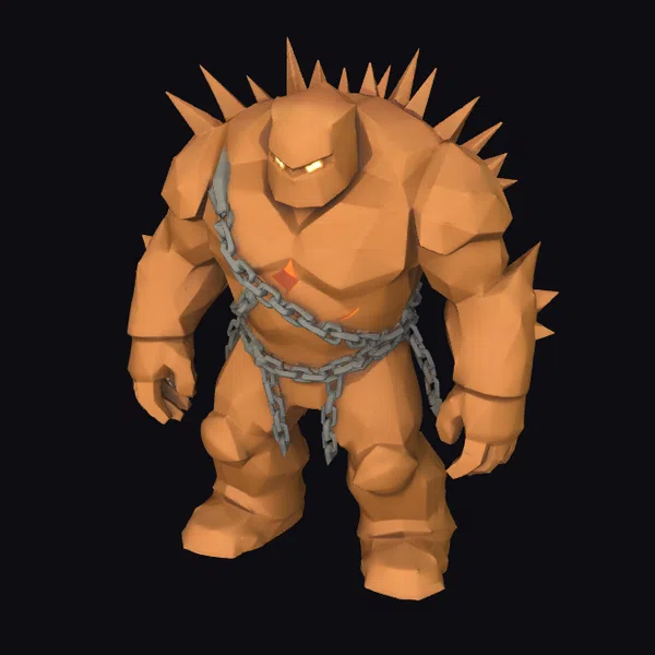 Gaze upon the imposing Spiked Stone Golem, its rugged, earthy form bristling with menacing spikes. Chains bind its waist, suggesting a force both wild and restrained. Its low-poly, stylized design gives it a uniquely cartoonish yet formidable presence.