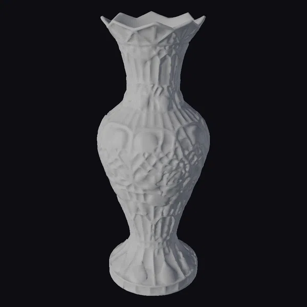 Standing tall with its flared mouth and elegantly rounded base, this stained glass vase is a masterpiece of decorative art. The body of the vase is a rich, deep red, interwoven with a mosaic of heart shapes and blooming roses in vibrant red and green hues. Thin, silver lines define the stained glass pieces, creating a beautiful contrast against the smooth, glassy finish. Light filtering through the glass casts a kaleidoscope of colors, adding depth and warmth to any room. Ideal for adding a touch of romance and elegance to games, animations, VR/AR experiences, or 3D designs, this vase promises to be a captivating element. Its detailed craftsmanship and beautiful design make it perfect for interior design projects, architectural visualizations, or as a standalone decorative piece.