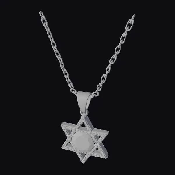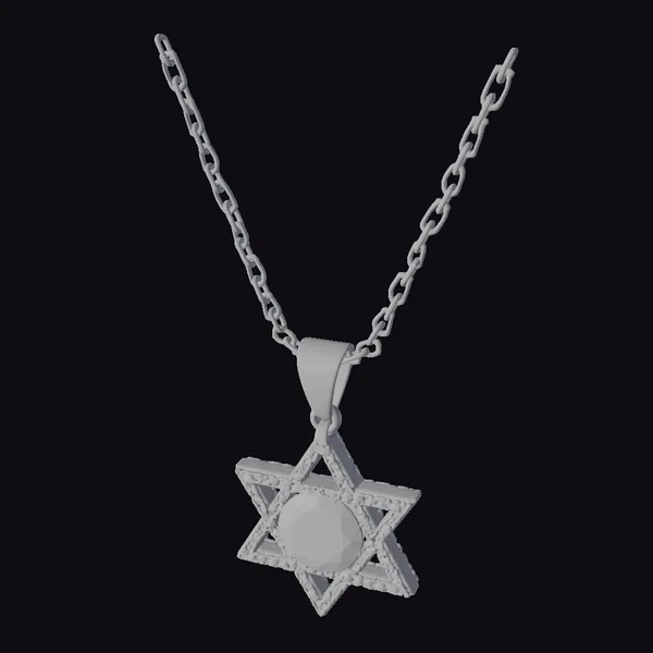 In a stunning display of craftsmanship, the Star of David pendant takes center stage, suspended from a dainty chain that adds a touch of elegance. The pendant itself boasts a golden hue, with a central circle that seems to invite the eye. The star’s points are sharply defined, giving the piece a sense of dynamism. As light dances across its surface, the textured details become apparent, lending an air of authenticity. This model is perfect for use in games, 3D printing, VR/AR experiences, animation, and design projects, where a touch of symbolic luxury is desired.